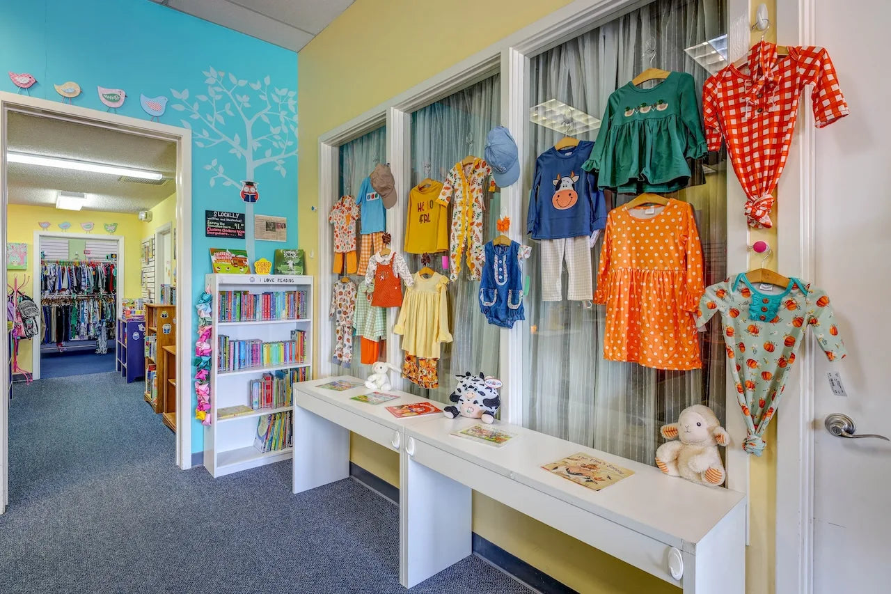 of new and high-quality used clothing in all sizes from newborn to teen, toys, games, puzzles, books, sportswear, baby gear, room decor, small furniture, and more.