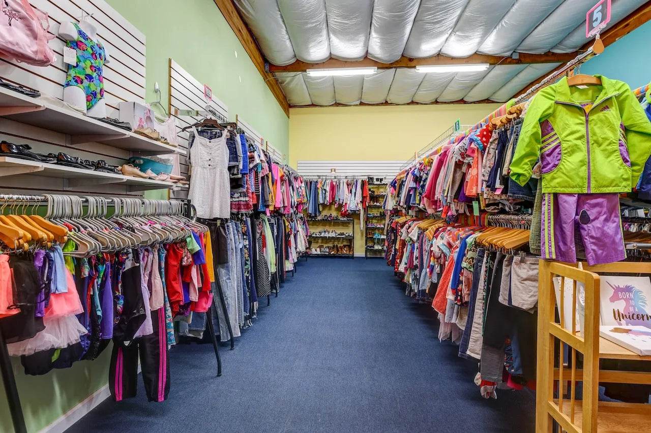 of new and high-quality used clothing in all sizes from newborn to teen, toys, games, puzzles, books, sportswear, baby gear, room decor, small furniture, and more.