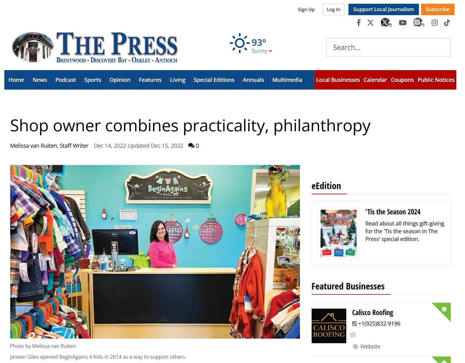 "Shop owner combines practicality, philanthropy", The Press, December 14, 2022, Melissa van Ruiten